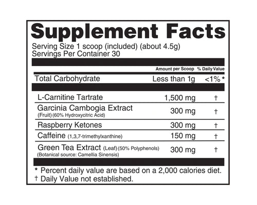 | Garcinia Cambogia Extract (Fruit) (60% Hydroxycitric Acid) | 300 mg | † |