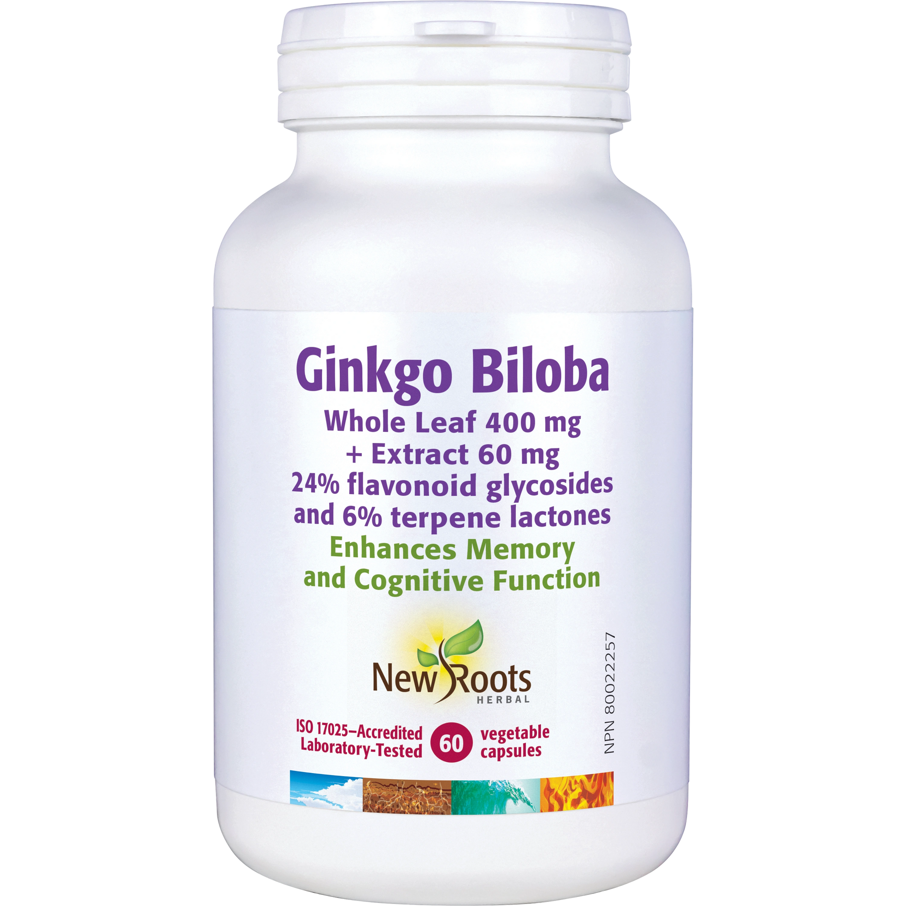 Ginkgo (Ginkgo biloba) leaf 400 mg, Ginkgo (Ginkgo biloba) leaf extract, 24% flavonoid glycosides and 6% terpene lactones 60 mg